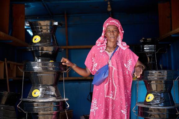 Among the women entrepreneurs supported by the project is Ndeye Soukeyna Sene, who has been selling improved cookstoves in Mbour, Senegal, since 2015. With project support, including training in marketing, business management coaching and personal development sessions, as well as a 10-stove starter kit, she was able to significantly strengthen her sales activities. These measures enabled her to invest in sales events and to employ three additional women as sales agents. As a result, her monthly sales increased from five improved cookstoves to more than 120.