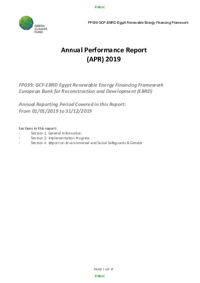 2019 Annual Performance Report for FP039: Egypt Renewable Energy Financing Framework