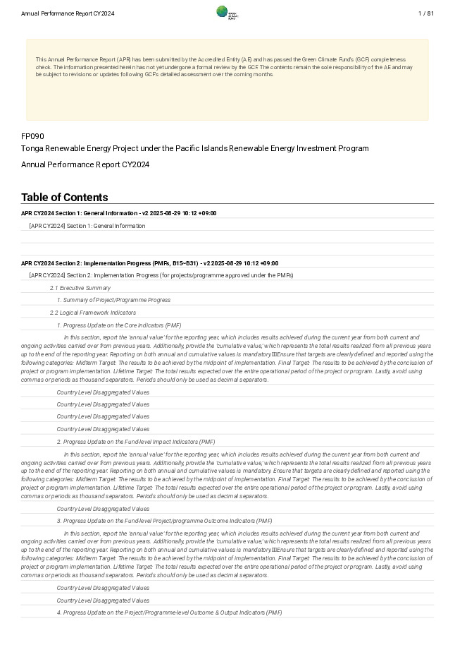 2024 Annual Performance Report for FP090: Tonga Renewable Energy Project under the Pacific Islands Renewable Energy Investment Program