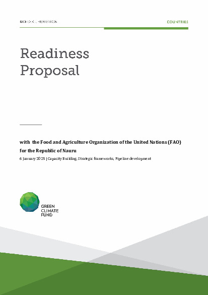This Readiness proposal aims at contributing to effective transformative solutions by the most vulnerable communities of Nauru to cope with soaring climate change challenges through enhancing technical capacity of stakeholders and putting in place necessary data and policies and institutional arrangements that help co-design of community-centred programmes. These co-designed innovative solutions will be developed during five state-of-the-art visioning workshops and will support Nauru’s climate finance planning and will be the basis for the development of a Concept Note, which will also involve a pre-feasibility study and a mitigation potential assessment.