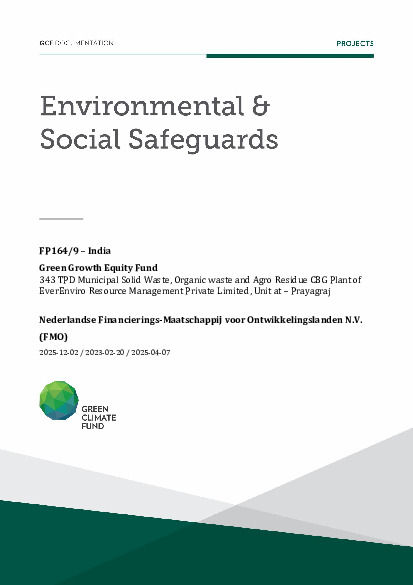 This document presents relevant environmental and social safeguards (ESS) information about FP64: Green Growth Equity Fund, specifically for the sub-project "343 TPD Municipal Solid Waste, Organic waste and Agro Residue CBG Plant of EverEnviro Resource Management Private Limited, Unit at – Prayagraj". Project and programme funding proposals that have environmental or social impacts are required to provide these reports as annexes to the funding proposals.