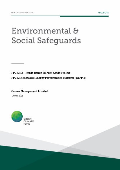 This document presents relevant environmental and social safeguards (ESS) information about FP222: Renewable Energy Performance Platform (REPP 2), specifically for the sub-project "Prado Benue III Mini-Grids Project". Project and programme funding proposals that have environmental or social impacts are required to provide these reports as annexes to the funding proposals.