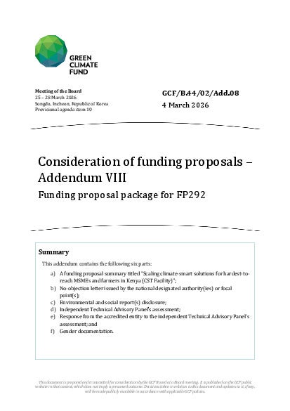 GCF/B.44/02/Add.08: Consideration of funding proposals – Addendum VIII Funding proposal package for FP292