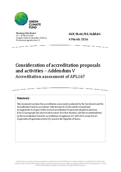 GCF/B.44/03/Add.05: Consideration of accreditation proposals and activities – Addendum V Accreditation assessment of APL167