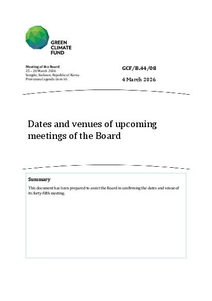 GCF/B.44/08: Dates and venues of upcoming meetings of the Board