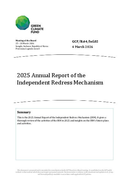 GCF/B.44/Inf.02: 2025 Annual Report of the Independent Redress Mechanism