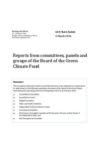GCF/B.44/Inf.05: Reports from committees, panels and groups of the Board of the Green Climate Fund