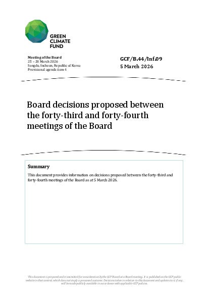 GCF/B.44/Inf.09: Board decisions proposed between the forty-third and forty-fourth meetings of the Board