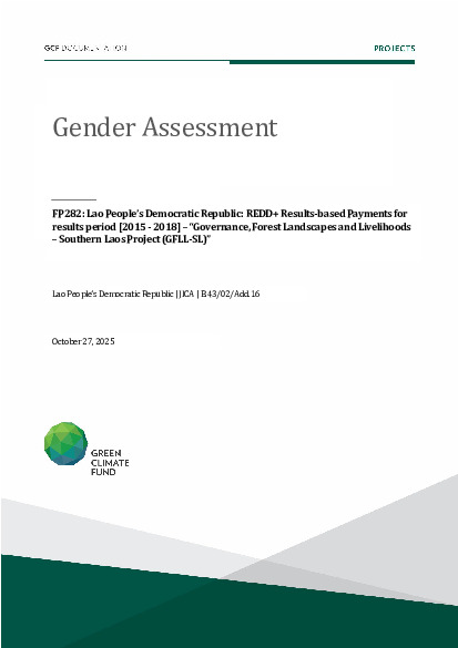 Gender assessment for FP282: Lao People’s Democratic Republic: REDD+ Results-based Payments for results period [2015 – 2018] – “Governance, Forest Landscapes and Livelihoods – Southern Laos Project (GFLL-SL)”