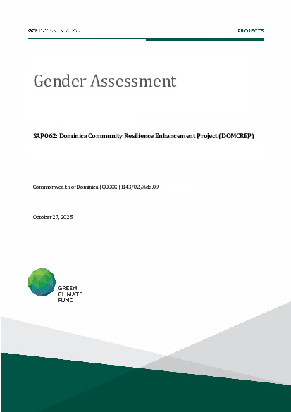 This gender assessment for SAP062: Dominica Community Resilience Enhancement Project (DOMCREP) seeks to present the issues, gaps and problems that should be addressed by gender-responsive project interventions.