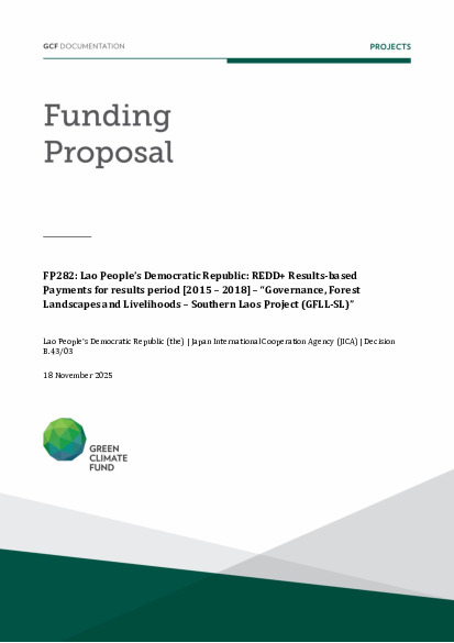 This document presents funding proposal "FP282: Lao People’s Democratic Republic: REDD+ Results-based Payments for results period [2015 - 2018] – “Governance, Forest Landscapes and Livelihoods – Southern Laos Project (GFLL-SL)”" as approved by the Board of the Green Climate Fund at B.43.