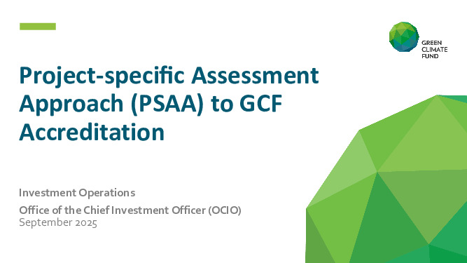 This presentation introduces the PSAA pilot, outlining its purpose, process, and role in expanding access to GCF climate finance