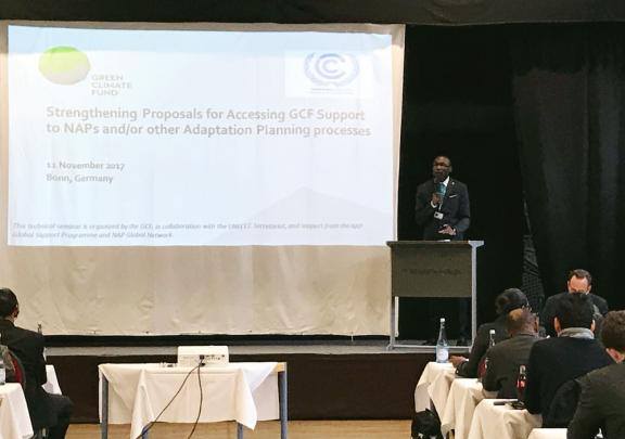 Pa Ousman Jarju, Director of GCF’s Country Programming Division, said the Fund understands that countries urgently require financing to develop adaptation plans. He told participants how GCF is stepping up support to countries to help them strengthen the quality of proposals and access this funding.