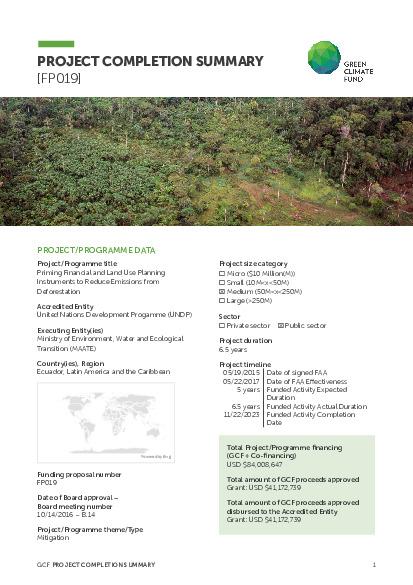 Priming Financial and Land Use Planning Instruments to Reduce Emissions from Deforestations